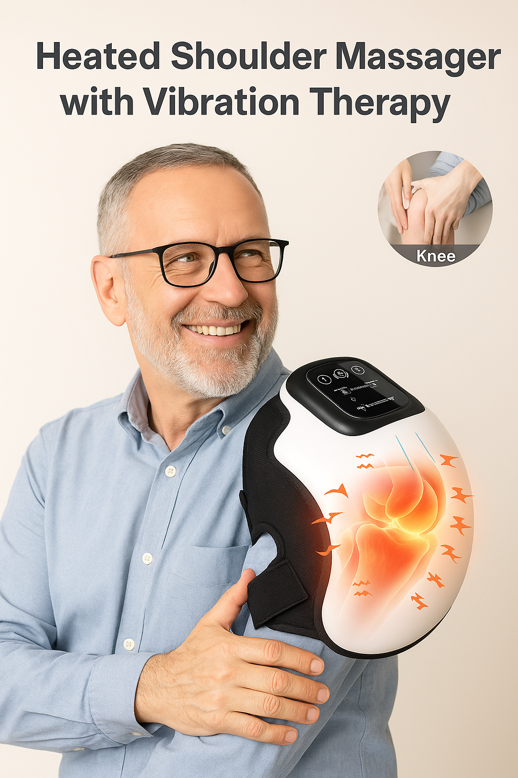 Designed to ease muscle tension and improve circulation, it combines gentle heat with adjustable vibration for fast comfort. Perfect for relieving stiffness, soreness, or fatigue — all in one portable, easy-to-use device.